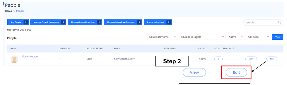 Step 2: Click Edit of the selected employee.